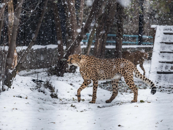 Гепарды живут в Новосибирском зоопарке с 1970-х годов. Для них оборудован большой вольер с тёплым помещением. Пятнистая шкура служит этим животным не только украшением, но и эффективной маскировкой в условиях саванны. Хищники хорошо переносят местные зимы и выходят на прогулку, когда температура воздуха не опускается ниже –10 градусов.