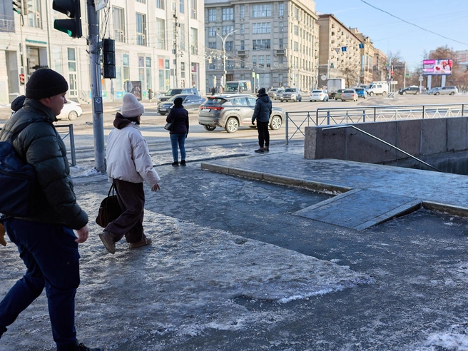 Спуск в метро в центре Новосибирска сейчас сопряжен с трудностями из-за гололеда.