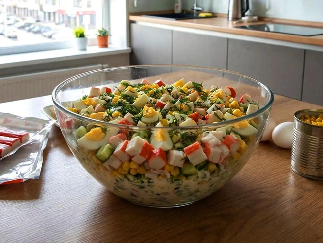 Крабовый салат — универсальное решение, когда необходимо быстро создать сытное и аппетитное угощение. Это блюдо подходит для семейного обеда, встречи с друзьями и праздничного застолья.