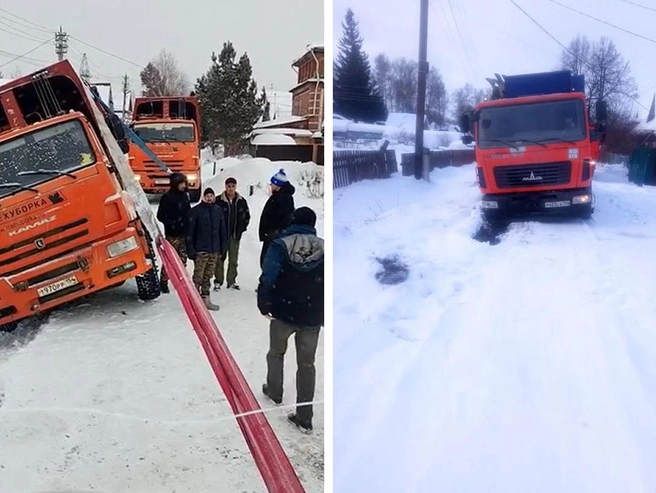 Мусоровозы блокируют сугробы