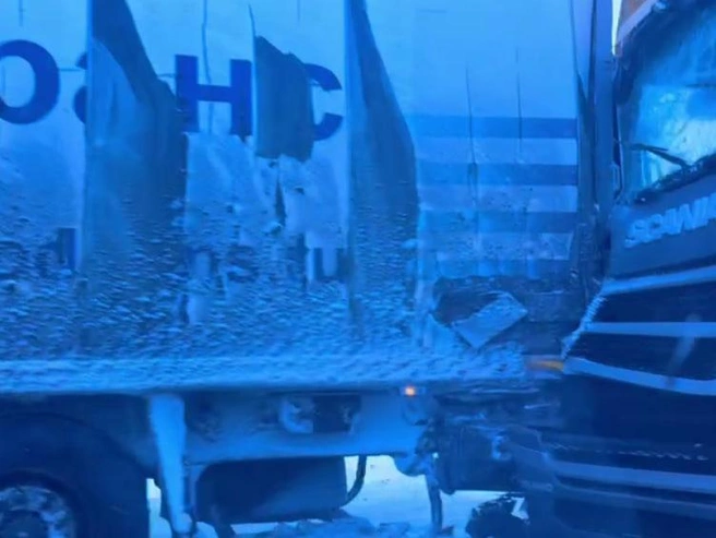 На опубликованных фотографиях видно, что у фуры марки Scania значительно пострадал бампер.