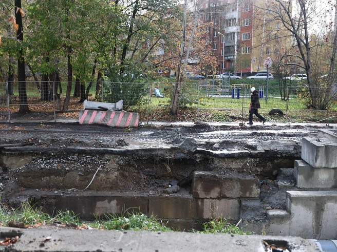 Разрушение на улице Адриена Лежена зафиксировали во время ремонта теплосети.