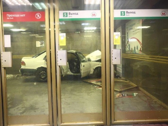 На место аварии оперативно прибыли экипажи Госавтоинспекции и спасательных служб. Водитель автомобиля покинул место происшествия до приезда экстренных служб. Специалисты демонтировали поврежденную входную дверь метро.