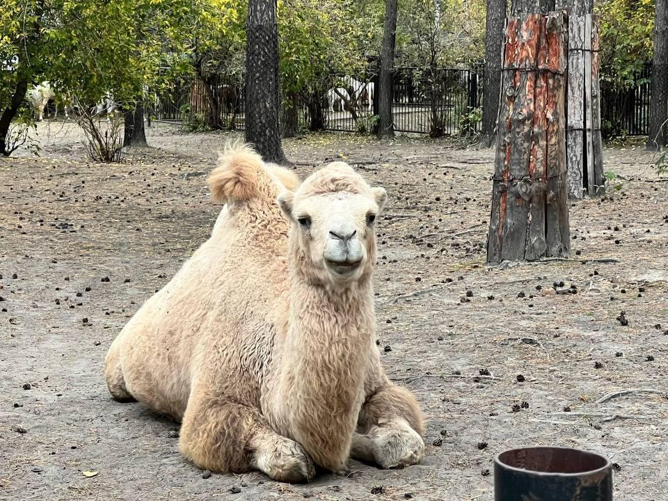 Спасённые звери зоопарка Новосибирска — видеоБык временно живёт в одном вольере с верблюдом.