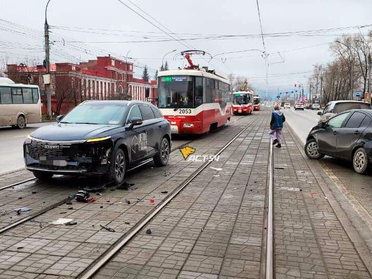 ДТП в Новосибирске: иномарки заблокировали трамваиСтолкновение автомобилей на улице Мира привело к временному прекращению трамвайного движения в направлении Оловозаводской.