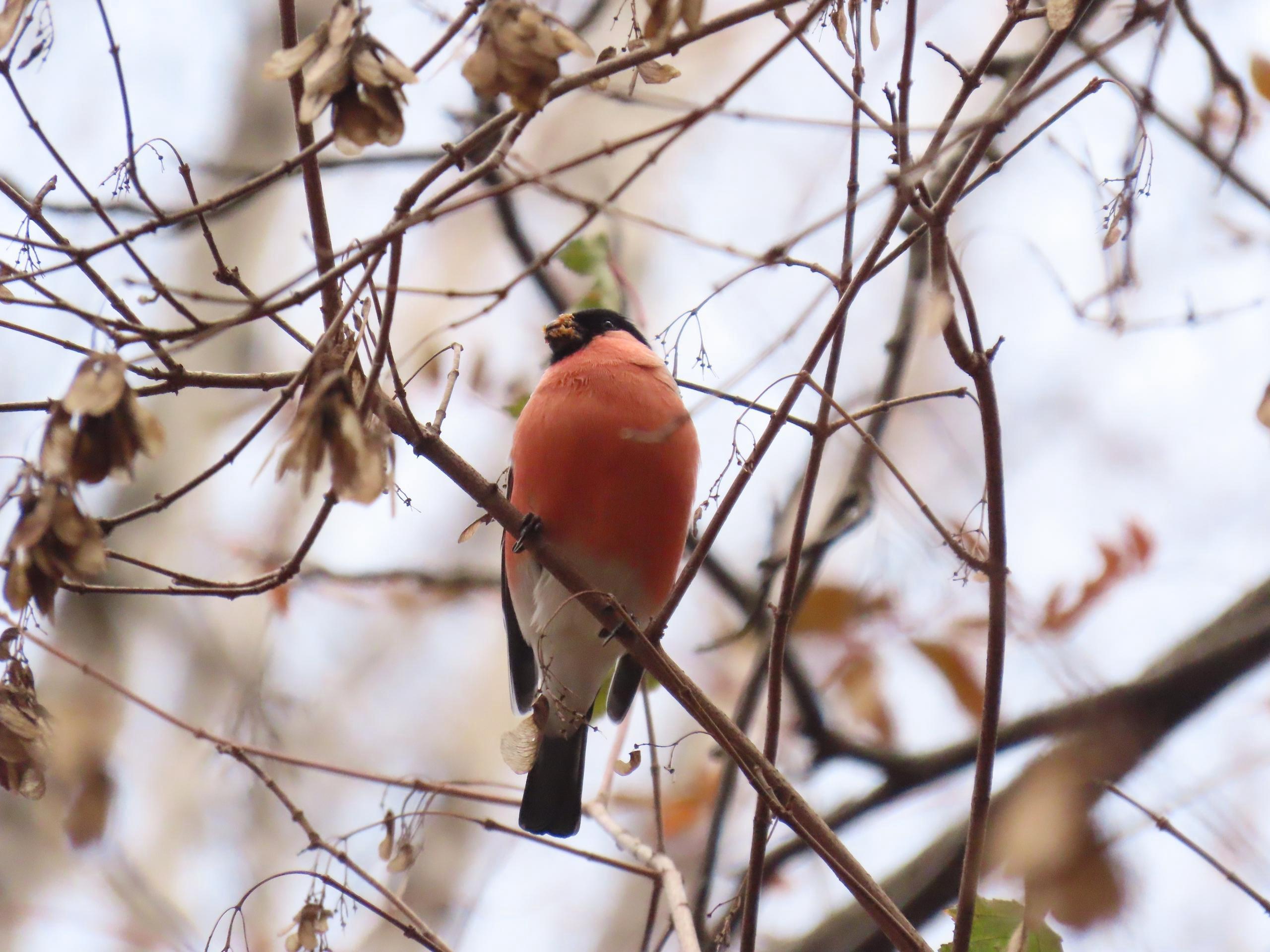 Снегирь в Академгородке: версия о травмеНа фотографии изображён самец снегиря, который отличается яркой окраской.