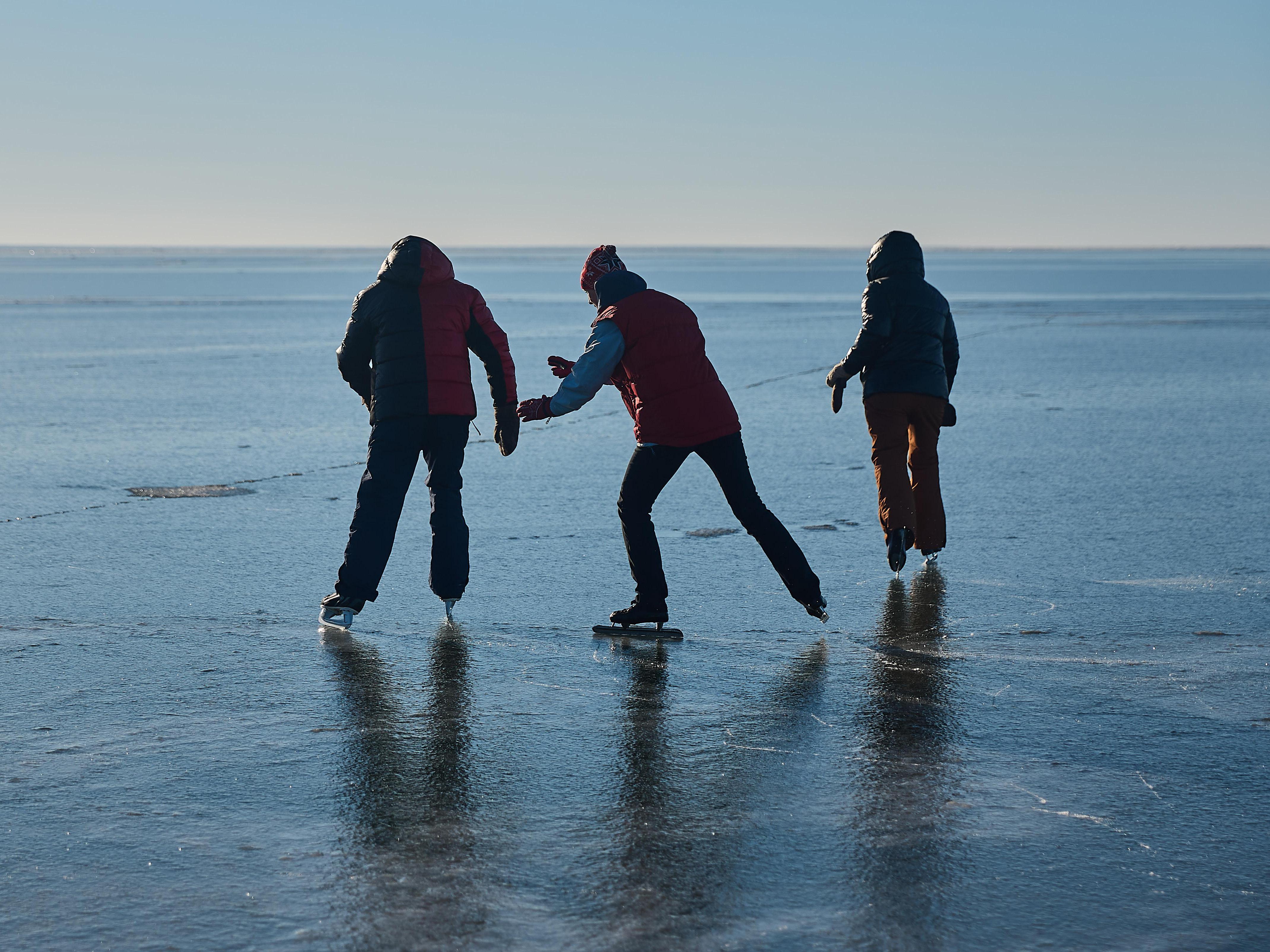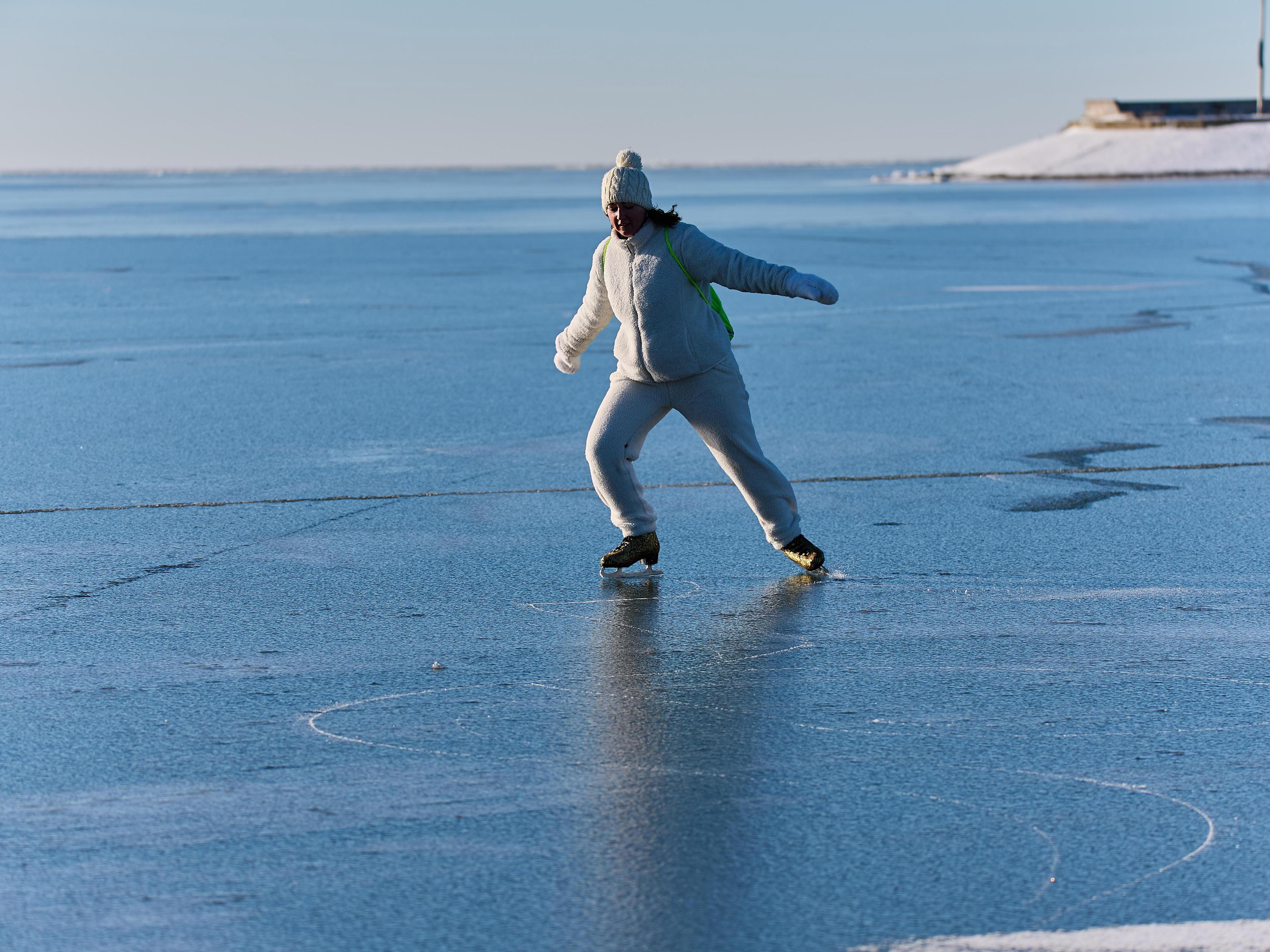 Экстремальное катание на коньках по тонкому льдуВ воскресенье жители Новосибирска собрались на пляже «Звезда» для прогулок и катания на коньках по только что замёрзшему Обскому водохранилищу.