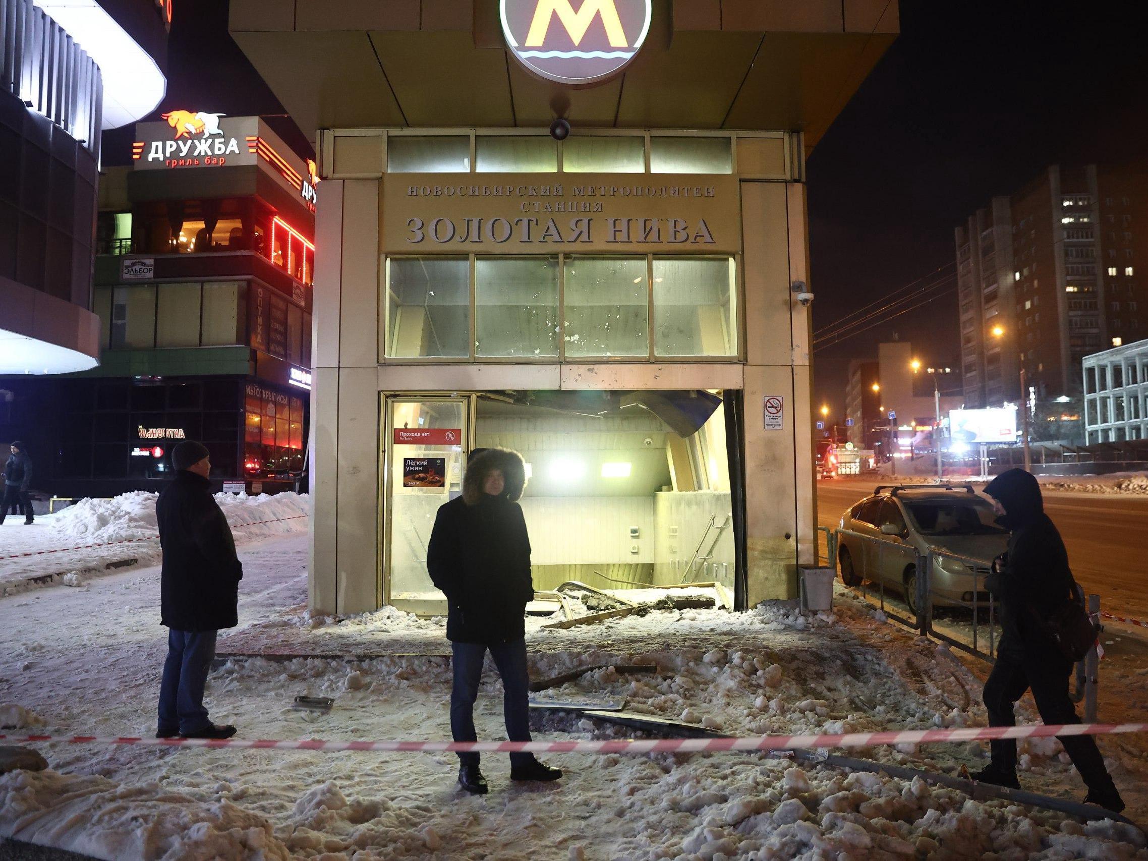 Белый седан врезался в вход метро Золотая НиваПроисшествие случилось в Дзержинском районе Новосибирска.