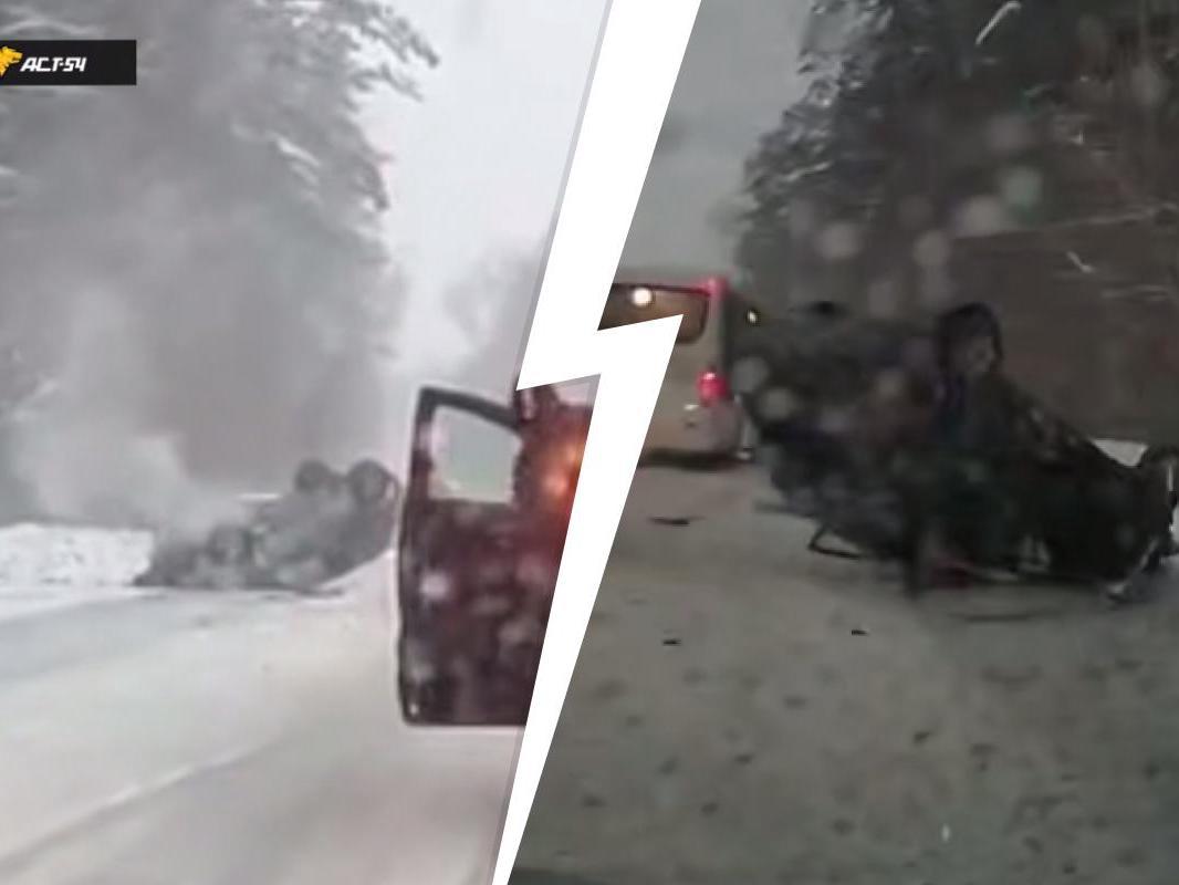 Toyota перевернулась на Баганской улицеДорожное происшествие с переворотом автомобиля произошло в Первомайском районе Новосибирска.