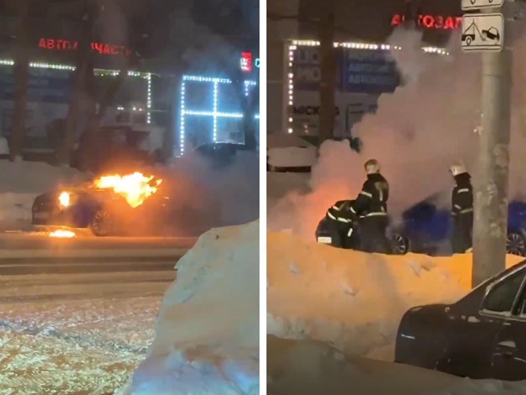 В Новосибирске сгорела машина на улице ФрунзеРано утром во дворе загорелся автомобиль, к тушению привлекались силы МЧС.
