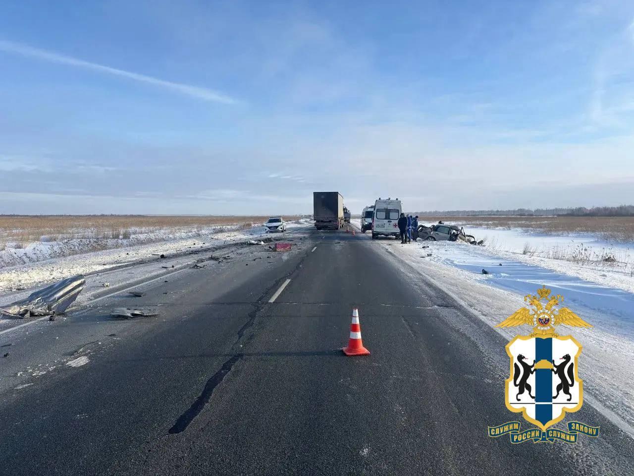 Два человека погибли в массовом ДТП с грузовиком под НовосибирскомДва человека погибли в столкновении трёх автомобилей на федеральной трассе в Новосибирской области. После аварии одна из машин улетела в кювет.